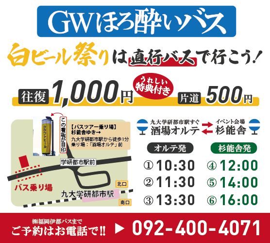 九大学研都市駅近くから杉能舎までの直行便が運行しますので、ぜひご利用ください。